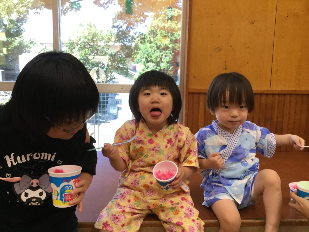 お家の方と一緒に輪っかを投げたりお水に浮いているおもちゃを頑張ってすくっていましたね。最後にはかき氷も食べてもらい、お祭り気分を満喫して頂けたかと思います♡