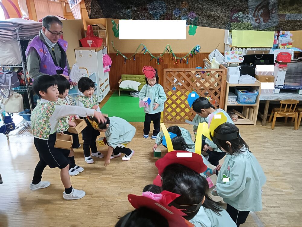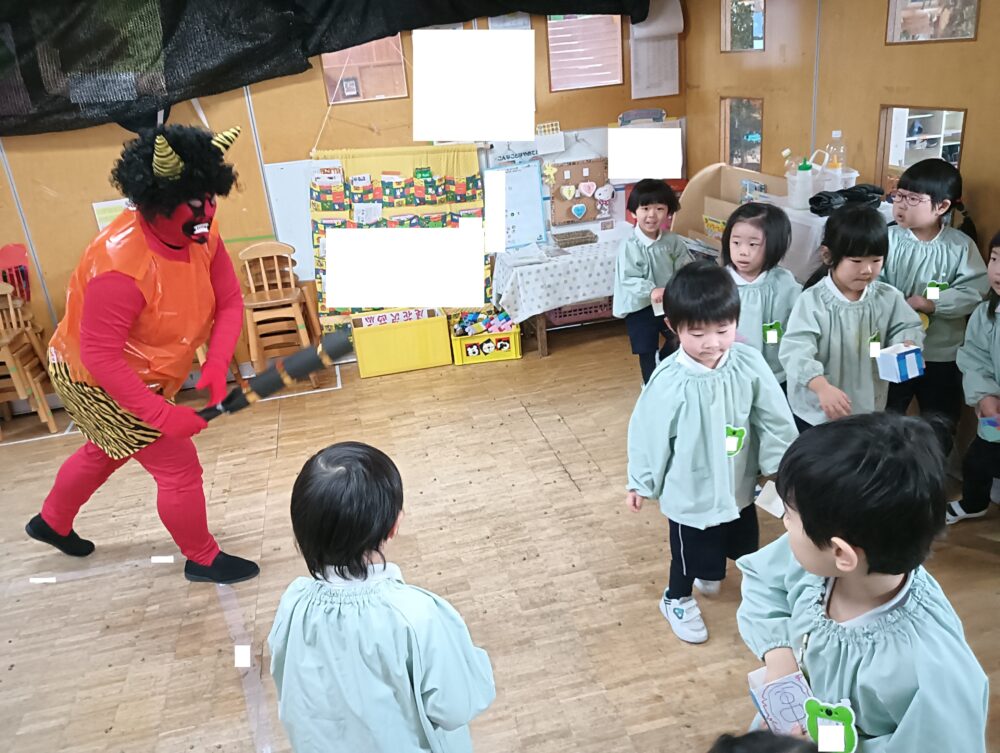 2月生まれのお友だちは、代表でクラスを回って豆をまいてくれ、みんなの心の鬼を追い出してくれました😊