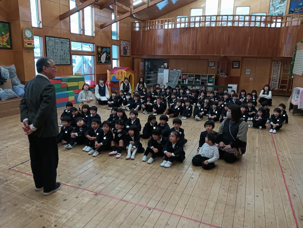 始業式の中では、冬休み中のお約束を確認し、園長先生からは新しい年になることや、干支についてのお話をしていただきました☆