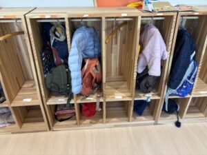 新しいロッカーは、子どもたちが自分で準備や片付けをしやすいように工夫されています。