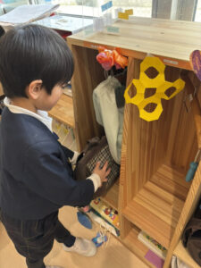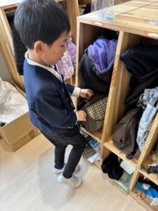 登園すると、自分の場所を見つけて荷物を入れて…その一連の動きが少しずつ上手になっていく姿に、毎日成長を感じます。