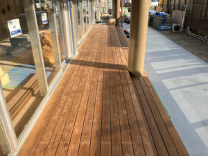 3)ウッドデッキ: 外遊びの前後がもっと楽しく