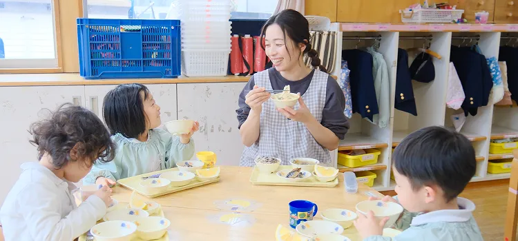 在園児の子どもたちと一緒に朝のお集まりや